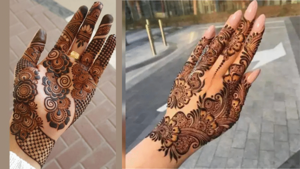 अरेबिक और ज्योमेट्रिक पैटर्न वाले मिनिमल डिजाइंस 2025 में खूब ट्रेंड कर रहे हैं। ये फ्रंट हैंड पर बहुत ही सूंदर और मॉडर्न दिखते हैं।